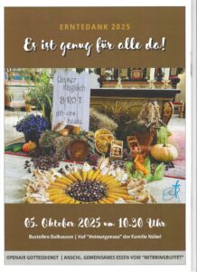 Einladung zum Erntedank 2025 – für die Gesamtpfarrei Heiligste Dreifaltigkeit am 5. Oktober auf Bustollen Dalhausen
