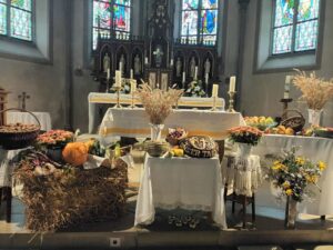 Unsere Kirche ist täglich geöffnet und wer möchte, darf gerne noch etwas hinzustellen oder einfach die Zeit nutzen, um für unser tägliches und vielfältiges Nahrungsangebot Gott zu danken.